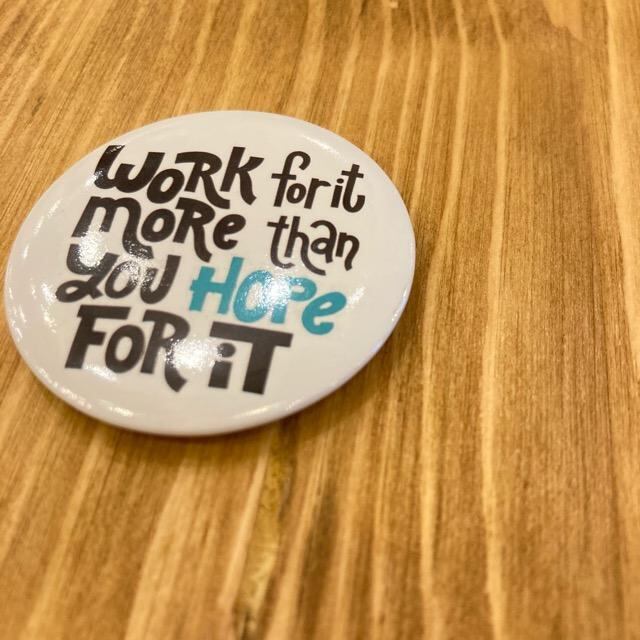 TOPANGA Jewelry Happy Boost 缶バッジ work for it more than you hope for it 望むもの以上にそれに向かって努力して プレゼント アクセサリー