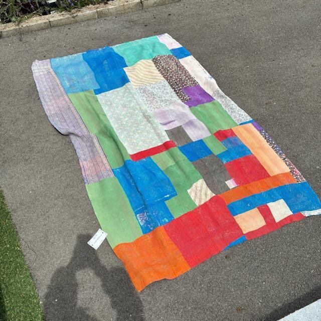 インド ヴィンテージラリーキルト 26000-24 120×190cm カンタ ベッドカバー ソファカバー マルチカバー ハンドメイド 1点もの ブルー グリーン