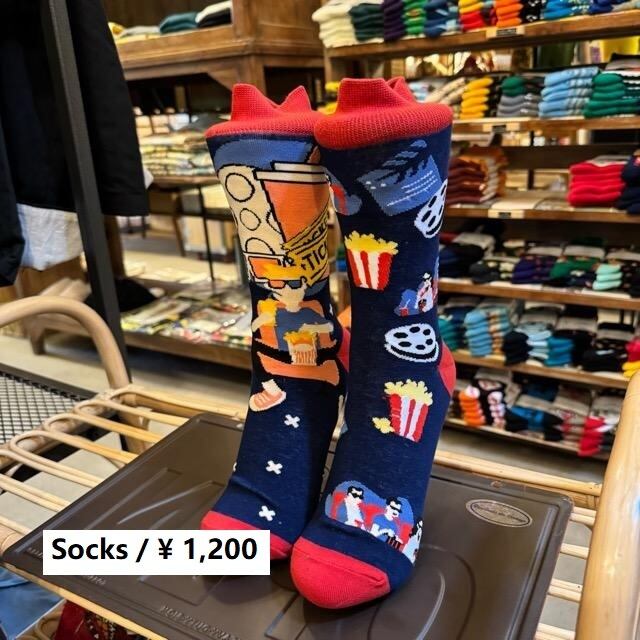個性豊かなソックスなどの小物を合わせるスタイルを提案しています。