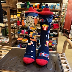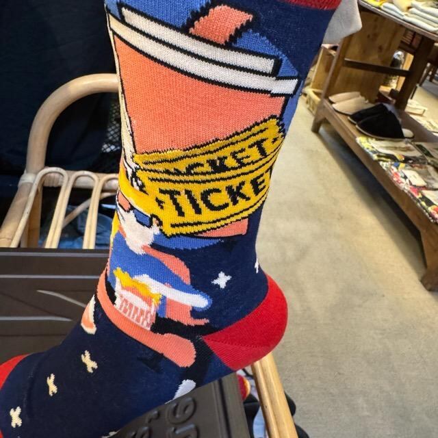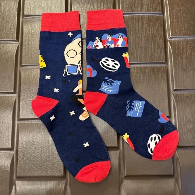 TOPANGA SOCKS Lady's アシンメトリーソックス シネマ 映画 ポップコーン スニーカー 足元ファッション 靴下 ユニーク プチギフト クルーソックス