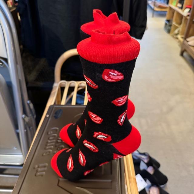 TOPANGA SOCKS Lady's くちびるソックス 唇 口紅 レッド ブラック シンプル スニーカー 足元ファッション 靴下 ユニーク プチギフト クルーソックス