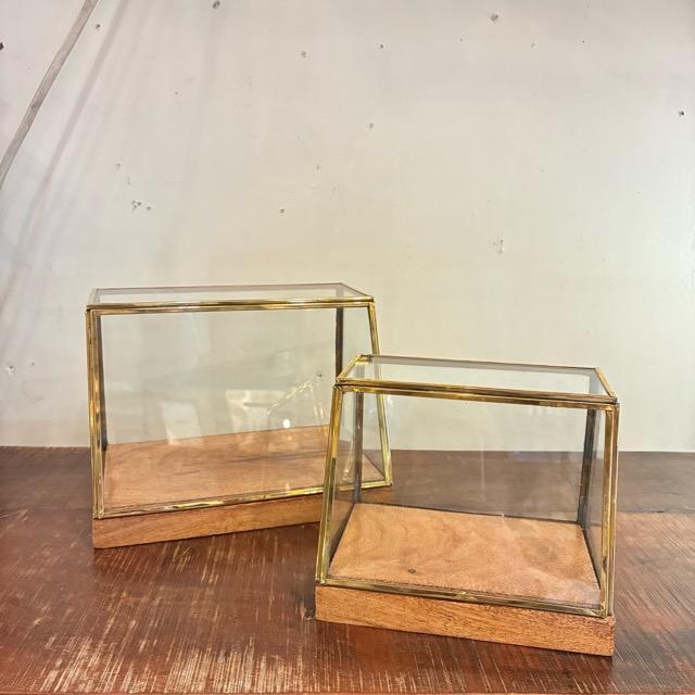 インド アカシアウッド&ブラスガラスショーケース Lサイズ アクセサリーケース 腕時計 サングラス アクセサリー ディスプレイケース 真鍮 アルテン