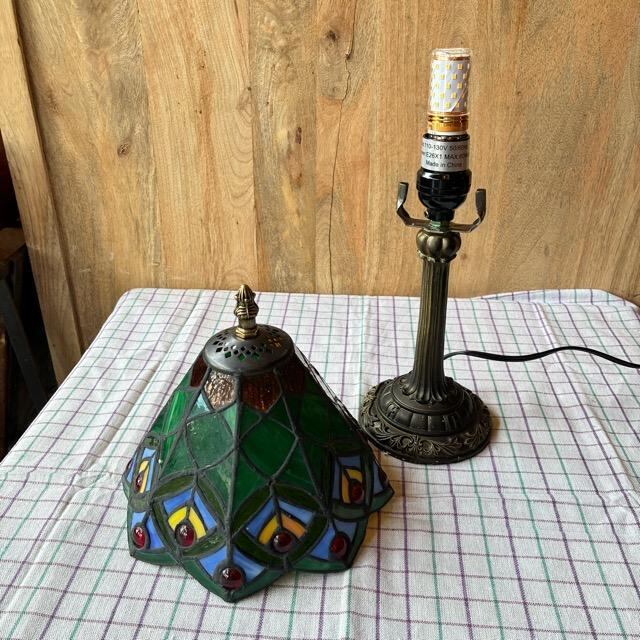 TOPANGA Lighting ステンドグラステーブルランプ ピーコック グリーン クジャク ガラスランプ スタンドランプ ナイトランプ 玄関 寝室
