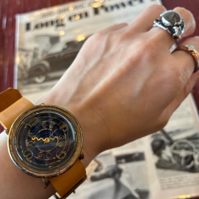 ちょっと武骨なレザーの組み合わせが素敵なハンドメイドウォッチ。