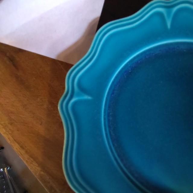 鮮やかなトルコブルーが料理を引き立て、SNS映えする器です。