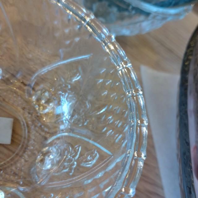 上品な柄が型押しされていて、テーブルコーディネートが華やかになるガラスボウル。