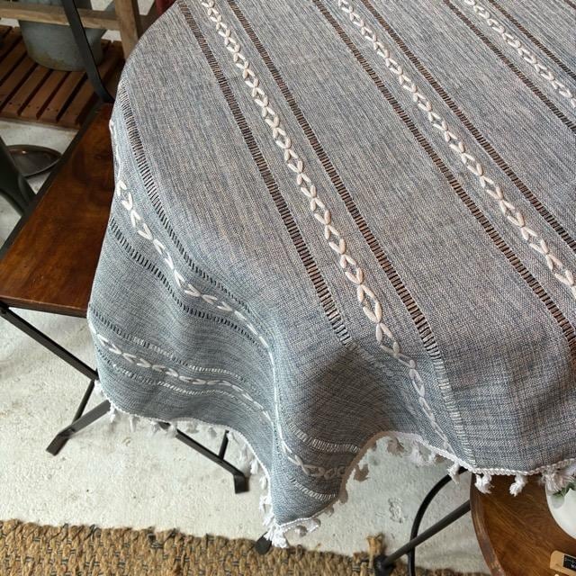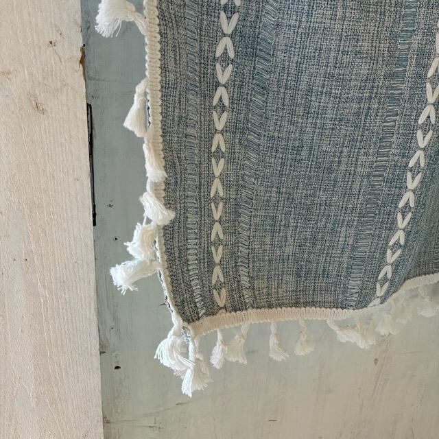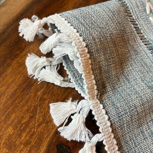 TOPANGA Homefurnishing ボヘミアンエンブロイダリーフリンジカーテン 140×180cm ブルー ナチュラル カーテンポール 腰高窓 出窓 刺繍 タッセル