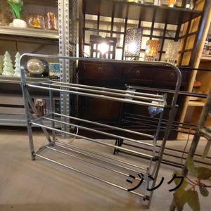 インダストリアルな雰囲気のあるハンマートン塗装を施した折り畳み式のシューズラック。