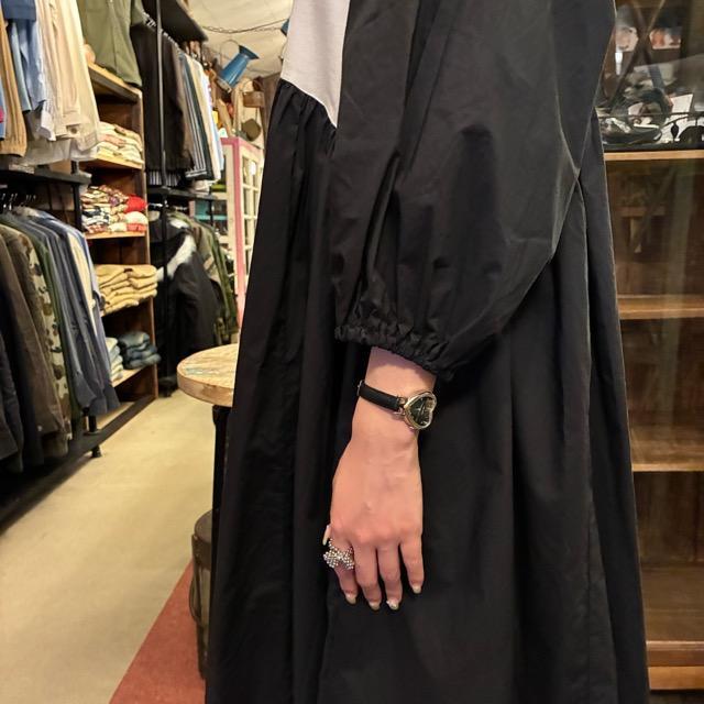 中肉のカットソー生地を組み合わせた存在感のあるワンピース。