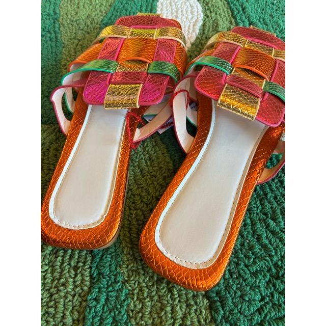 TOPANGA Footwear メタリックカラー編み込みサンダル ミュール スクエアトゥ リゾート 37 38 39 40