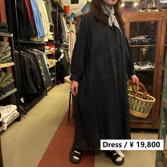 UNIVERSAL TISSU ユニヴァーサルティシュ ジャガード織ハンターカモVネックワンピース ネイビーカモフラ ロング UNIVERSAL TISSU ドレス 日本製