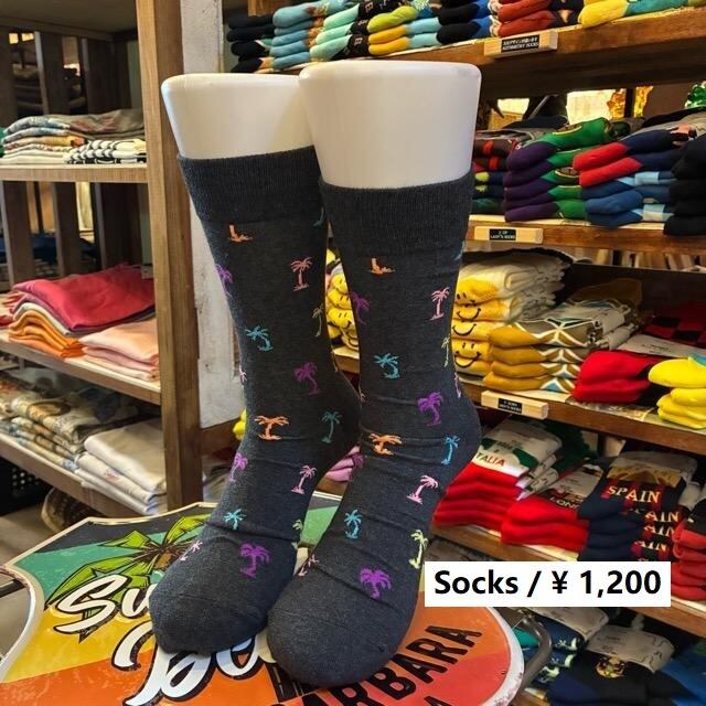 個性豊かなソックスなどの小物を合わせるスタイルを提案しています。