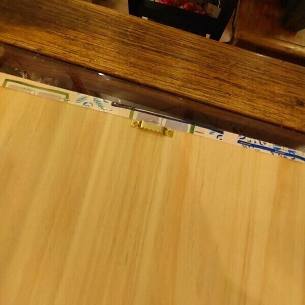 キャンバスプリントの絵をウッドフレームに貼り留めています。