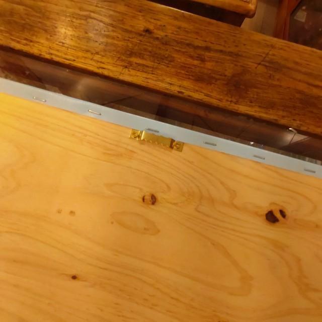 キャンバスプリントの絵をウッドフレームに貼り留めています。