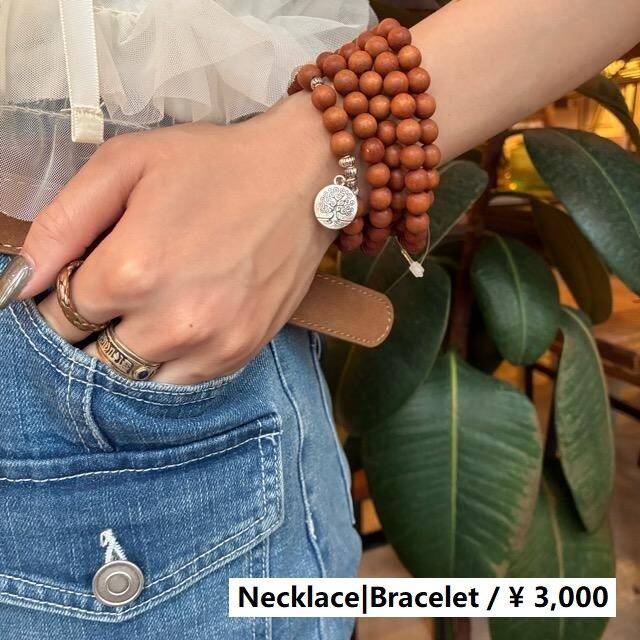TOPANGA Jewelry MARAブレスレット サンダルウッド 生命の木 ロングネックレス 数珠 瞑想 ヨガ ラップブレス 天然石 108個 マーラ 白檀