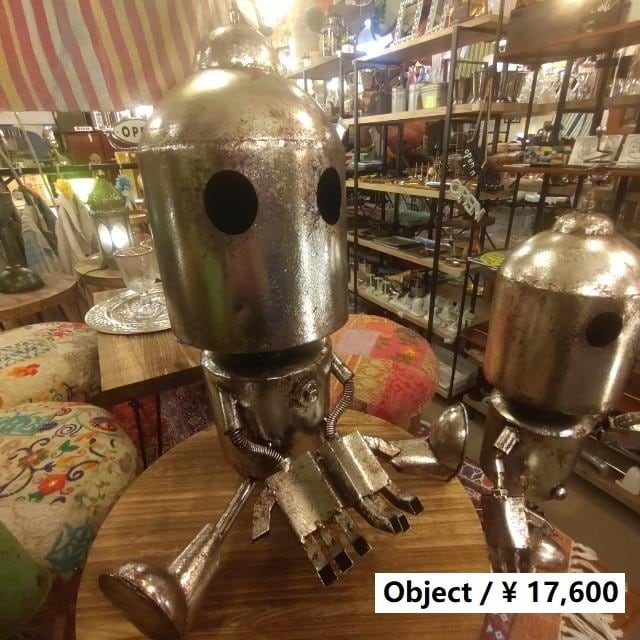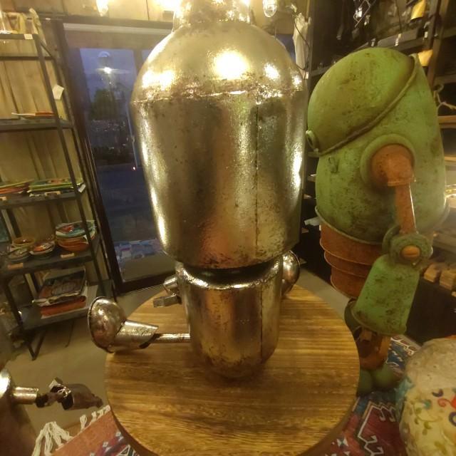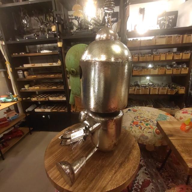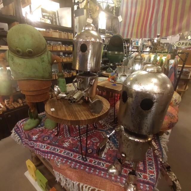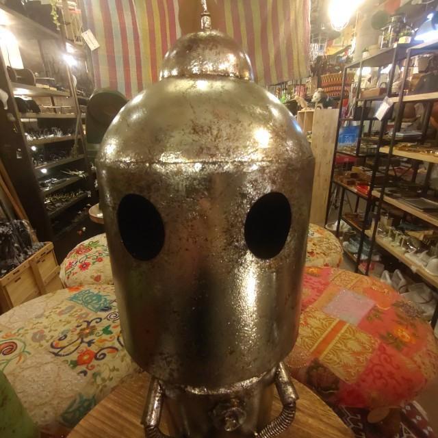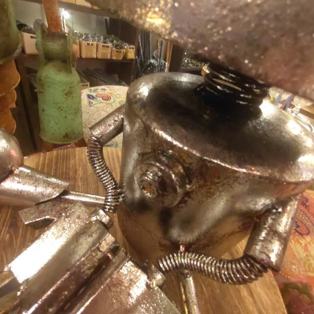 メタルロボパペット座り ガーデニング オブジェ ロボット 置物 レトロ アンティーク風 ハンドメイド