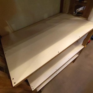 ベースに使用したチークウッド本来の木の色も活かしつつ全体をアンティーク窓の白に合わせました。