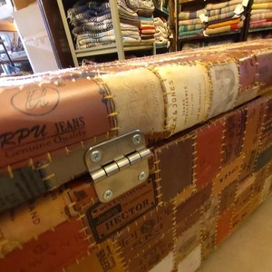 【受注生産】TOPANGA Funiture デニムレザーパッチボックスベンチ スツール 2人掛け 古材 ダイニング 長椅子 ボックス