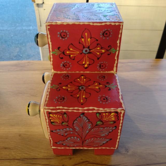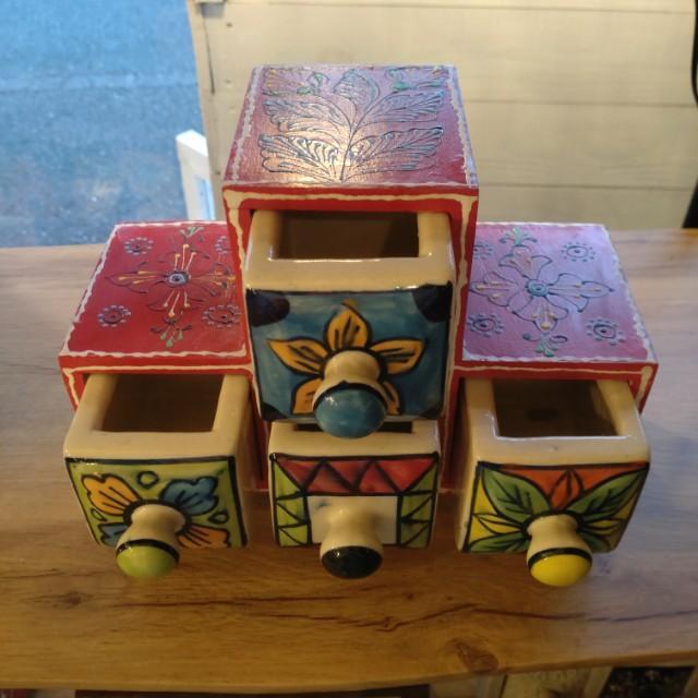 All of the drawer patterns are hand-painted. Each one has a different design, making it an item you'll grow to love. It's a cute item to store medicine or keys in, or even just leave it empty. The mehendi art is always cute and colorful, and just looking at it will cheer you up! Enjoy the handmade feel.