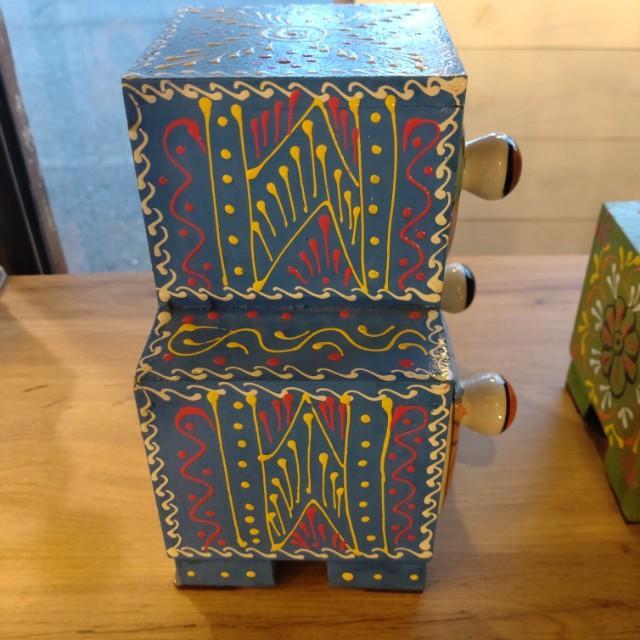 INDIA BLUE POTTERY 3DRAWERS CHEST 2COLORS IN TOTAL DRAWER OBJECT ENTRANCE STORAGE MEHNDI ART KEY CASE SEAL HOLDER