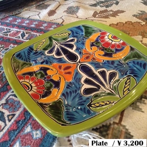 Mexico Guanajuato Ware Square plate Green Flat plate Platter
