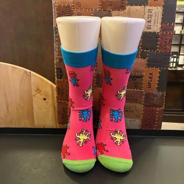 個性豊かなソックスなどの小物を合わせるスタイルを提案しています。