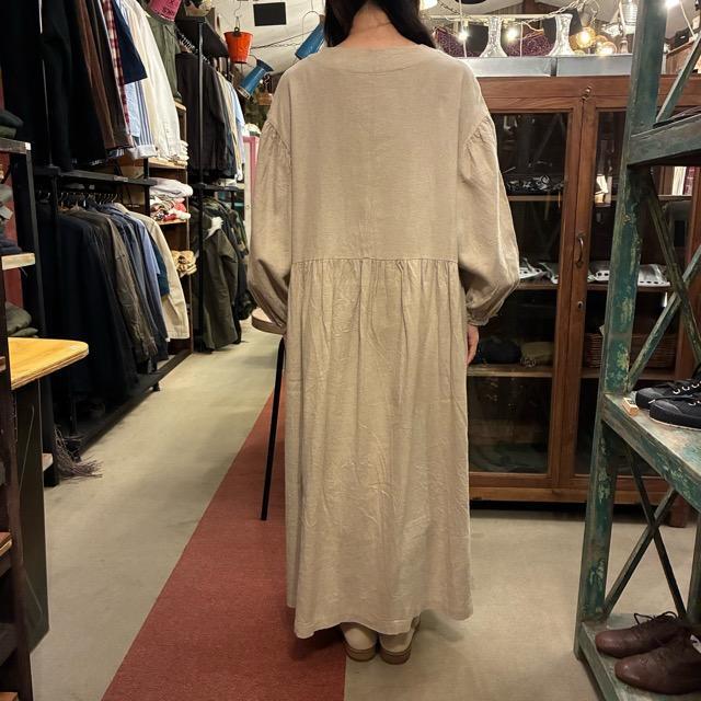 UNIVERSAL TISSU Cotton-Linen Brushed Twill Gown Dress, Off-White, Long, Made in Japan, Long Jacket, Open-Front