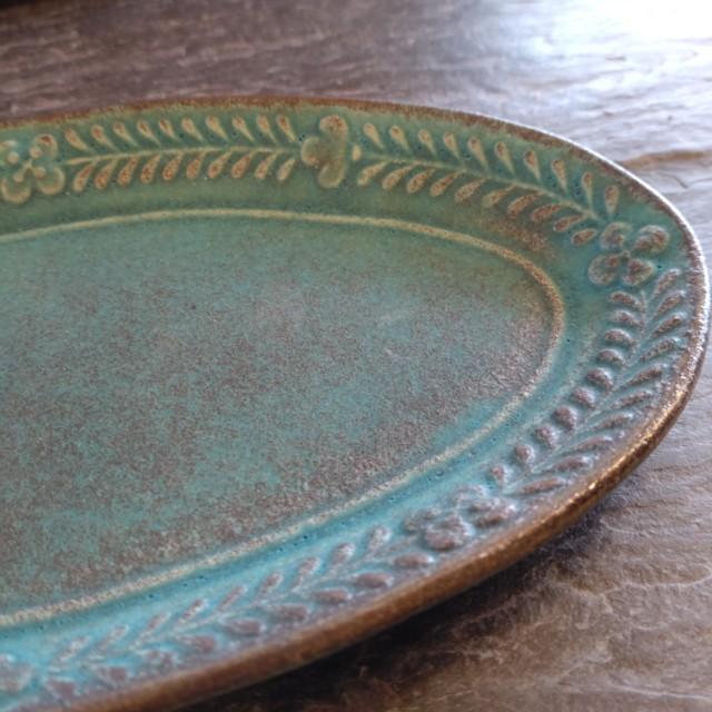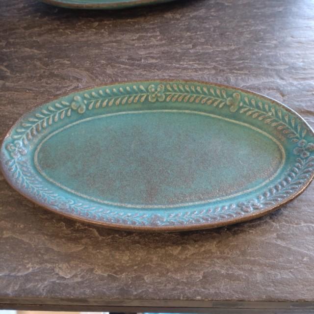 [Mashiko Ware] Rosemary Oval Plate, Shabby Turquoise, MAINDISH PLATE, LUNCH, Pasta, Made in Japan