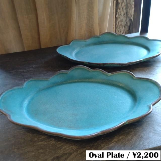 Mashiko Ware: Mokumoku Oval Plate, Shabby Turquoise, MAINDISH PLATE, LUNCH, Pasta, Made in Japan