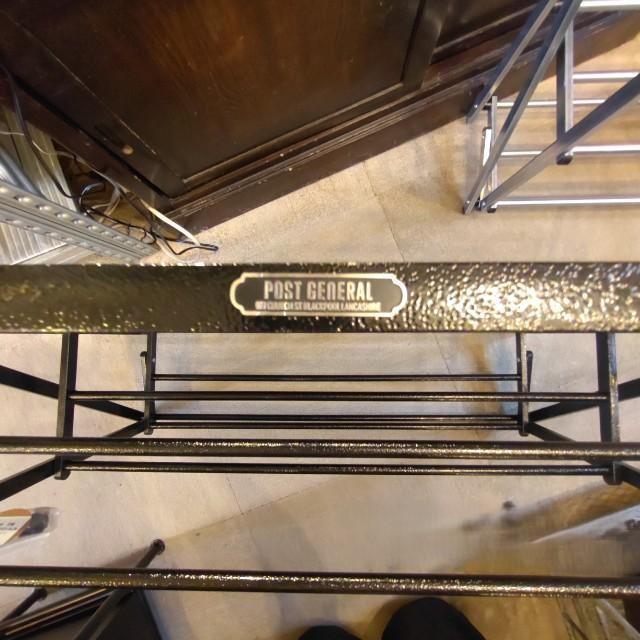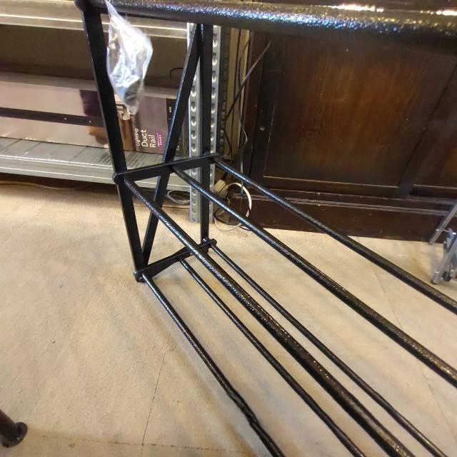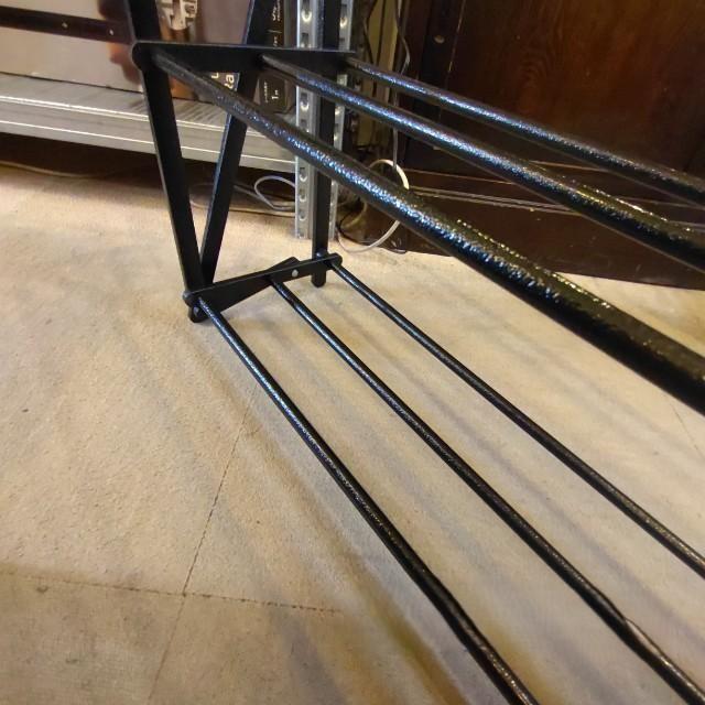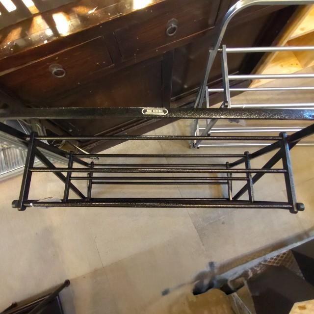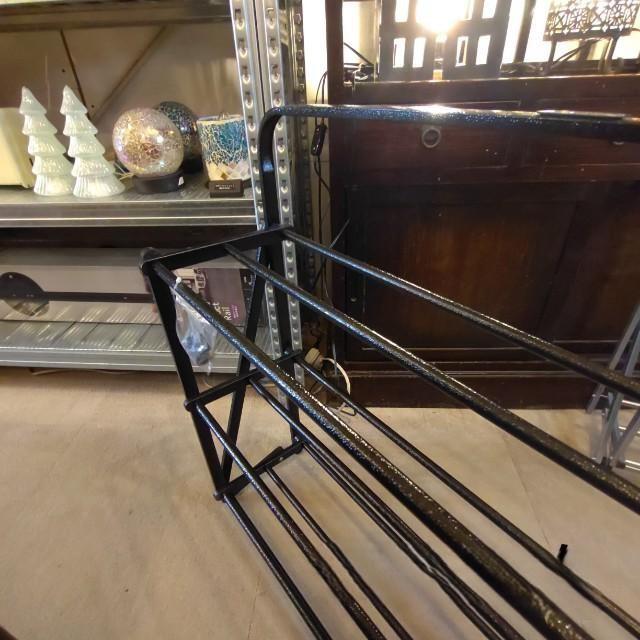 インダストリアルな雰囲気のあるハンマートン塗装を施した折り畳み式のシューズラック。