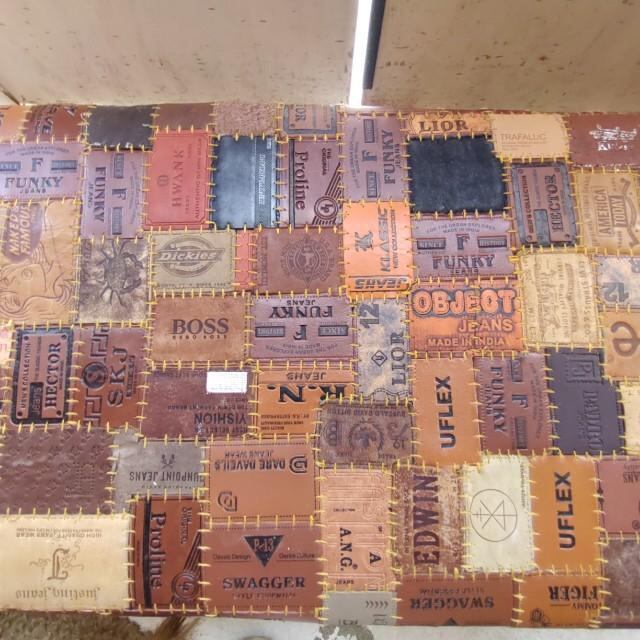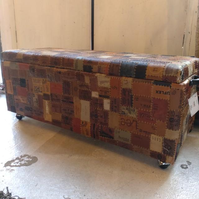 【受注生産】TOPANGA Funiture Vintage Jeans Leather Patchwork Bench Stool 2-seater Dining Chaise lomgue Box