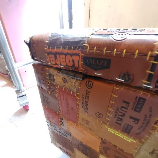 レザーパッチワークを使用したボックスベンチが完成しました!