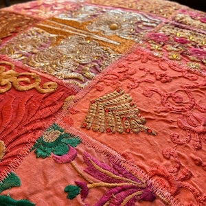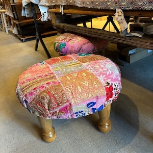 India Zari patchwork stool Pink C