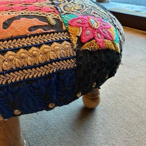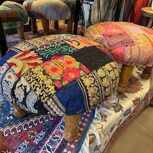 座面に使われているのは、スパンコールや鮮やかな糸で
