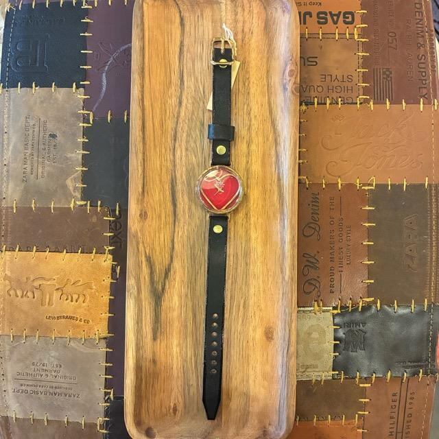 [Made to order] Brass and leather handmade watch GATA Apple heart BK Made to order Brass and leather handmade watch Apple heart black