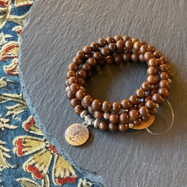 108個のアカテツを繋げたマーラブレスレット。