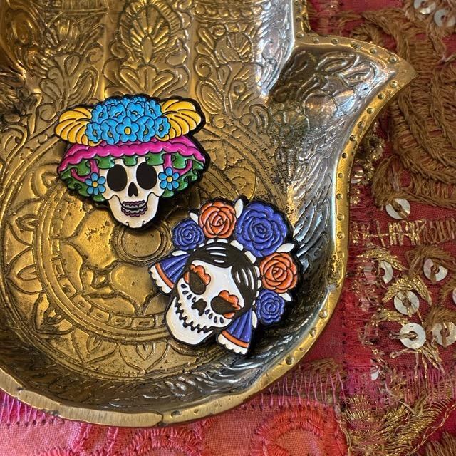 TOPANGA Jewelry Frida Calavera Skull Pin Brooch, perfect as a small gift for bags, caps, or jackets.