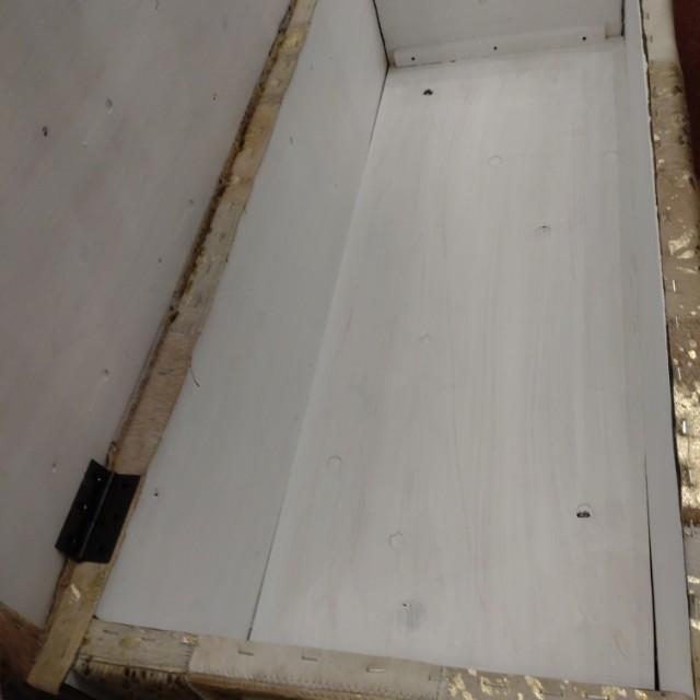 座面はフタ式になっており開くと収納ができる仕様に仕上げました。