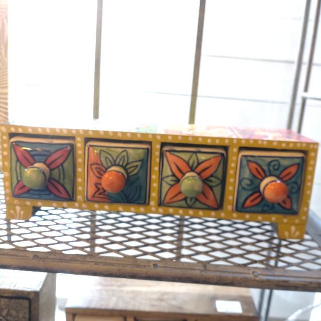 INDIA BLUE POTTERY 4DRAWERS CHEST Blue Tiles DRAWER OBJECT ENTRANCE STORAGE MEHNDI ART KEY CASE SEAL HOLDER