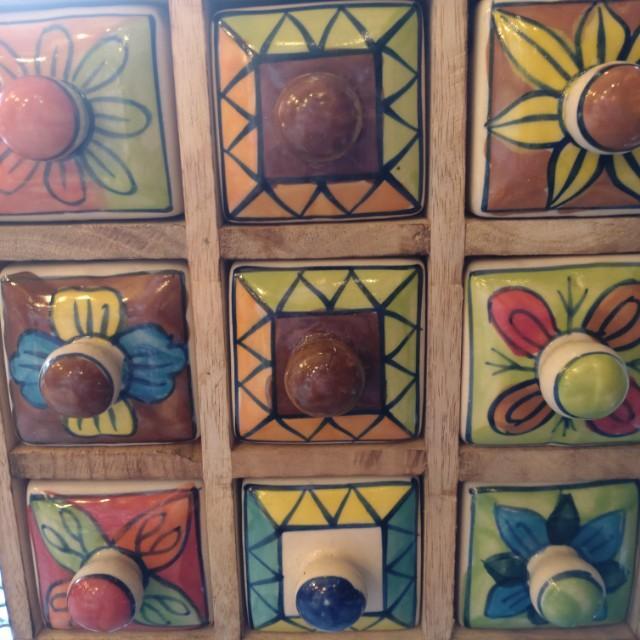 INDIA BLUE POTTERY 9DRAWERS CHEST Multi Color DRAWER OBJECT ENTRANCE STORAGE MEHNDI ART KEY CASE SEAL HOLDER