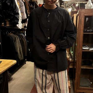 UNIVERSAL SEVEN Natural Typewriter Italian Filet Lace Stand Collar Shirt, Black, Long Sleeve, Cotton