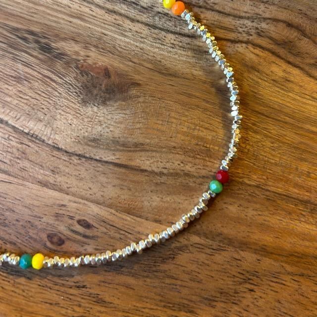 シンプルながら、ところどころカラフルなビーズが入っているので、