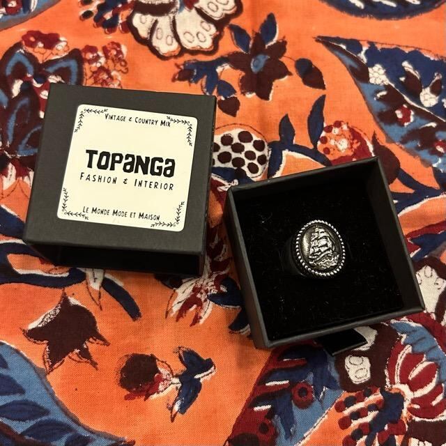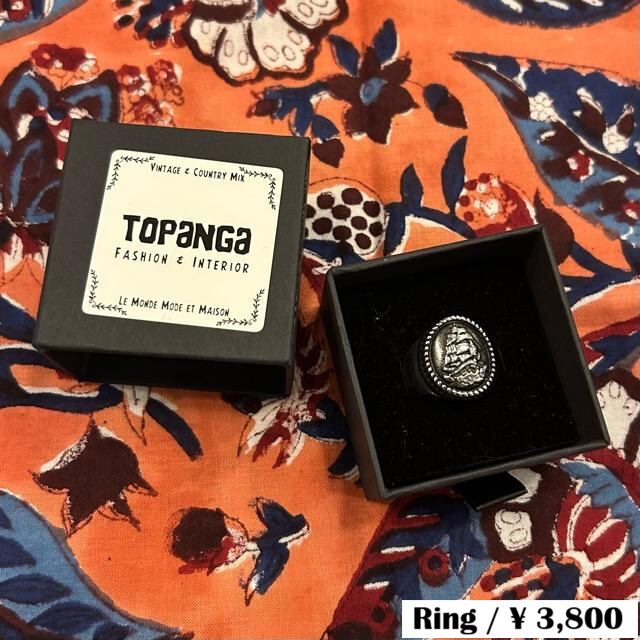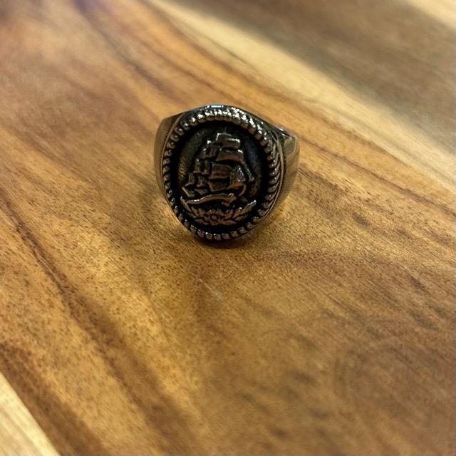 リングの正面に、帆船が描かれたおしゃれな指輪です。