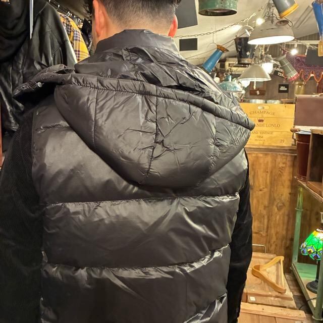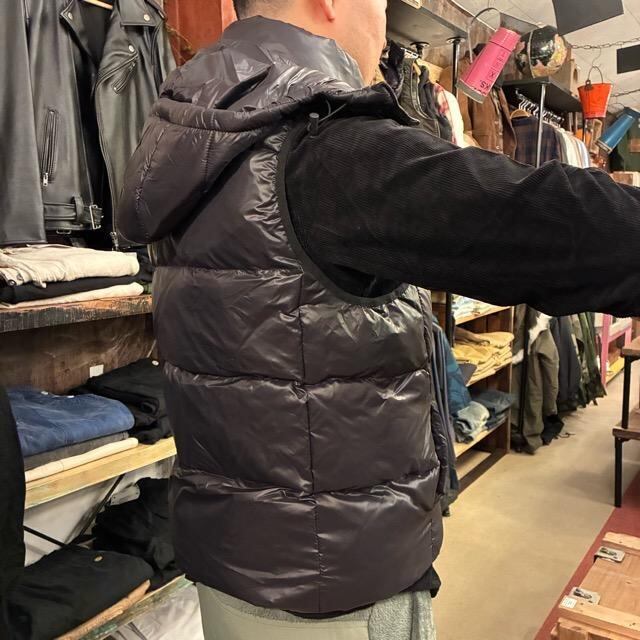 TOPANGA Men's Gold Lining Black Hooded Down Vest Quilting Vest Feather Outer