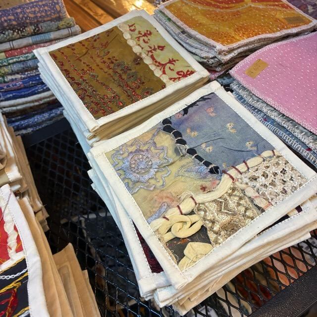 TOPANGA Kitchen India Vintage Sari Embroidery Coaster Assortment, Cotton and Glass. Ships by mail.