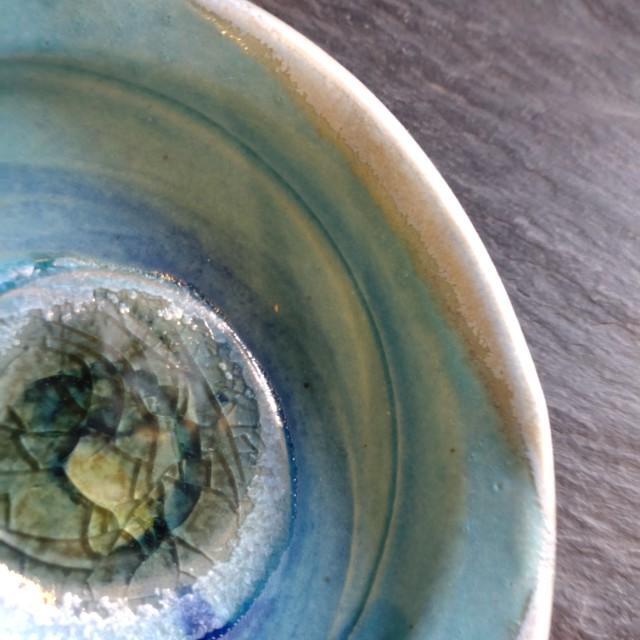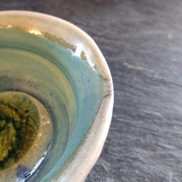 窯に入れる際、器の中にガラスを入れて焼き上げておりますので