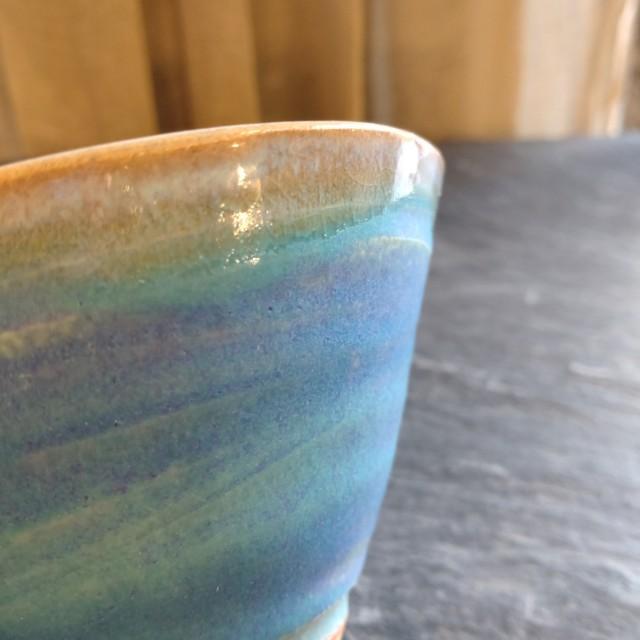 トルコブルーの釉薬を使い現代風にアレンジしております。