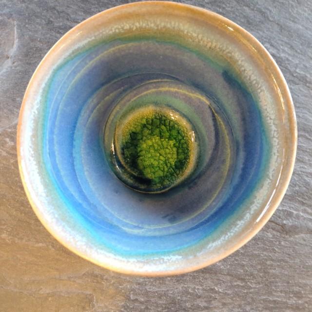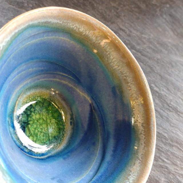 窯に入れる際、器の中にガラスを入れて焼き上げておりますので