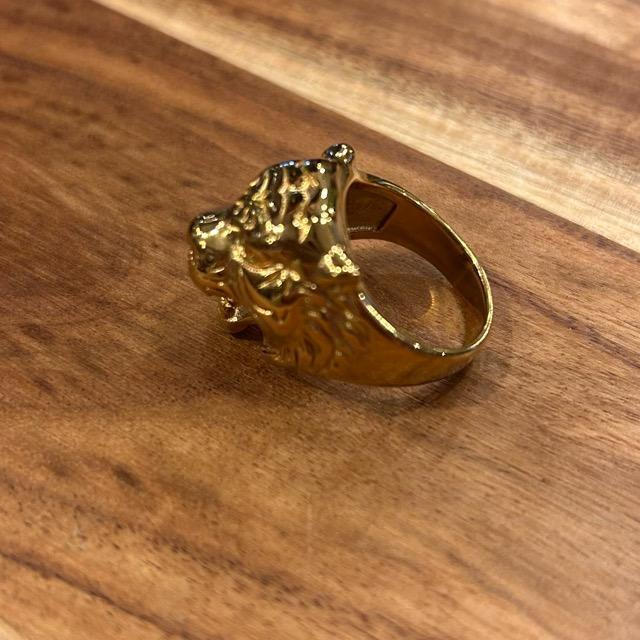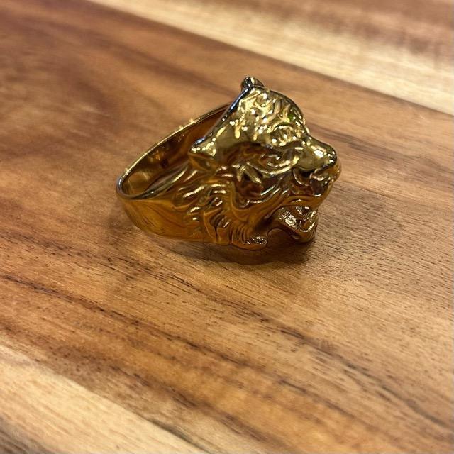 迫力抜群のゴールドカラーが眩しいトラの指輪です。