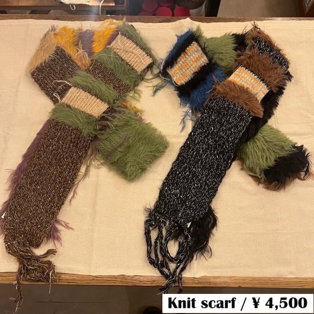異素材ミックスが目を引くロングなスリムマフラーです。